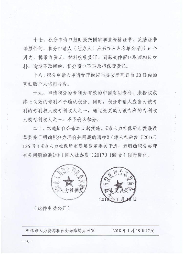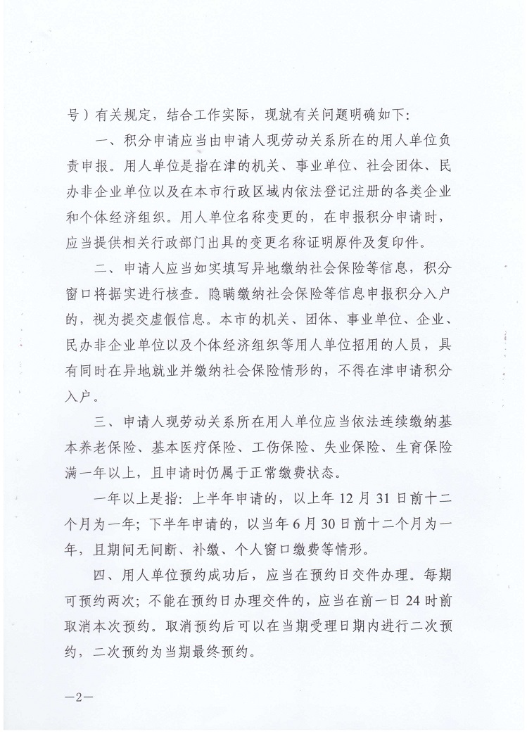天津市社保局/市改委关于进一步明确积分办理有关问题的通知